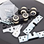 4 ball bearings (one inside each wheel), steel axle, and nylon wheels. The door slides silently and without any friction. This is due to the ball bearings (not needles) present in the bearings and to the nature of the materials of the sliding kit accessories. It has a load capacity of 120 kg, excellent for the vast majority of doors.